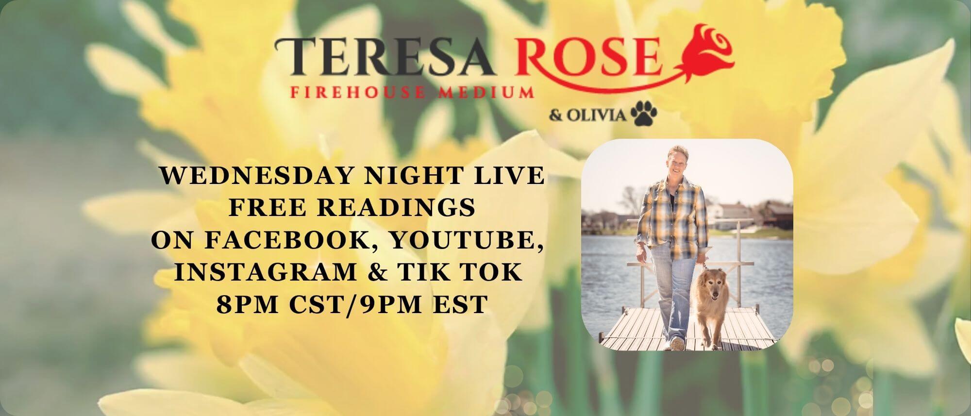 Teresa Rose Firehouse Medium – 8pm CST/9pm EST Every Wednesday Night – Live FREE Readings